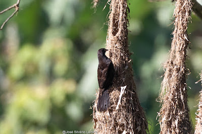 dia fotografamos a fêmea levando material de cola para o ninho. Após a